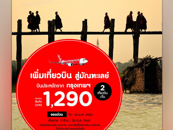 ซึ่งในวันนี้ govivigo มีโปรโมชั่นใหม่จากสายการบิน AirAsia "เดินสายไหว้พระ ท่องเที่ยวเมืองมัณฑะเลย์ กับราคาตั๋วสุดคุ้มจาก AirAsia" เส้นทางการบินต่างประเทศ จากกรุงเทพฯ สู่ มัณฑะเลย์ เริ่มต้นเพียง 1,290 บาท/เที่ยว ซึ่งสายการบิน AirAsia ได้ปรับเพิ่มเป็น 2 เที่ยวบินต่อวันแล้วอีกด้วย เที่ยวประเทศเพื่อนบ้าน เดินทางใกล้ รวดเร็ว ปลอดภัย ไปกับ AirAsia รับรองทริปนี้มีแต่เรื่องสนุก