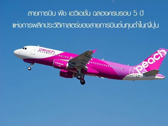 สายการบินดังของญี่ปุ่น "สายการบิน พีช เอวิเอชั่น" ได้ฉลองครบรอบ 5 ปี แห่งการพลิกประวัติศาสตร์ของสายการบินต้นทุนต่ำในญี่ปุ่น ไปเมื่อวันที่ 1 มีนาคมที่ผ่านมา จากการเปิดบริการโดยมีฐานการบินอยู่ที่สนามบินคันไซ ในฐานะของสายการบินต้นทุนต่ำแห่งแรกของประเทศญี่ปุ่นเมื่อเดือนมีนาคม 2555 ที่ผ่านมา พีชยังคงมุ่งมั่นเดินหน้าให้บริการผู้โดยสาร ด้วยการใช้คอนเซ็ปต์ของการเป็น "รถไฟที่บินได้" โดยมุ่งหวังจะเป็น "สะพานที่เชื่อมต่อระหว่างประเทศในเอเชียและประเทศญี่ปุ่น" ซึ่งพีชได้ใช้ประโยชน์จากความได้เปรียบทางภูมิศาสตร์ของสนามบินคันไซ ที่เดินทางมาประเทศในเอเชียได้ใกล้กว่าการเดินทางจากแถบโตเกียวถึงหนึ่งชั่วโมง นอกจากนี้จากการใช้โมเดลทางธุรกิจอันเป็นเอกลักษณ์ ด้วยการพัฒนาเส้นทางการบินทั้งในและระหว่างประเทศ ด้วยความเร็วที่สูงที่สุดในประวัติศาสตร์ของสายการบินในประเทศญี่ปุ่น พีชจึงได้รับการตอบรับเกินคาดด้วยจำนวนผู้โดยสารรวมถึงกว่า 1 ล้านคน ในเดือนพฤศจิกายน 2555 เป็นเวลาเพียง 8 เดือนตั้งแต่เริ่มดำเนินการ และได้ให้บริการผู้โดยสารรวมถึง 5 ล้านคนในเดือนเมษายน 2557 และ 10 ล้านคนในเดือนสิงหาคม 2558 ปัจจุบันได้ให้บริการแก่ผู้โดยสารแล้วจำนวนทั้งสิ้นถึงกว่า 17 ล้านคน