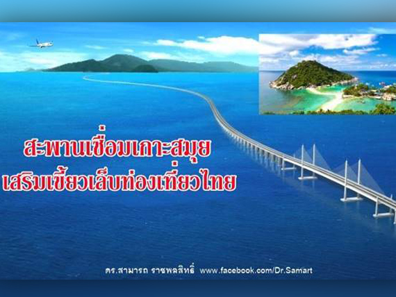 ด้วยความฮิตและความนิยมของสถานที่ท่องเที่ยวแห่งนี้ ที่มีนักท่องเที่ยวเดินทางมาเที่ยวตลอดทั้งปี จึงทำให้ ดร.สามารถ ราชพลสิทธิ์ อดีตรองผู้ว่าฯ กทม.และ ส.ส.พรรคประชาธิปัตย์ ได้โพสต์ข้อความทางเฟสบุ๊กเสนอแนวคิด สร้างสะพานเชื่อมเกาะสมุย เสริมเขี้ยวเล็บท่องเที่ยวไทย โดยระบุว่า เป็นที่รู้กันโดยทั่วไปว่าเกาะสมุยเป็นแหล่งท่องเที่ยวที่ขึ้นชื่อลือชาอันดับต้นๆ ของประเทศไทย สมุยเปรียบเสมือนอัญมณีอันล้ำค่าที่มีมนต์เสน่ห์สามารถดึงดูดนักท่องเที่ยวจากทั่วโลกให้มาเยือนได้ปีละจำนวนมาก นักท่องเที่ยวในเมืองหนาวหลายประเทศนิยมที่จะหนีหนาวมาพึ่งไออุ่นหรืออาบแดดที่เกาะสมุย ด้วยเหตุนี้ การท่องเที่ยวจึงเป็นกลไกสำคัญยิ่งในการขับเคลื่อนเศรษฐกิจของสมุย