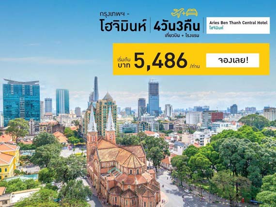 - แพคเกจ NokAir 4วัน 3คืน เส้นทางบิน : บินจาก กรุงเทพฯ (ดอนเมือง) ถึง โฮจิมินห์ ในราคาเริ่มต้น 5,486 บาท (ราคาต่อเที่ยวบินสำหรับ 1 ท่าน)