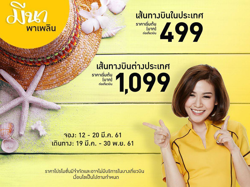 "มีนาพาเพลิน" เส้นทางบินในประเทศ ราคาเริ่มต้น 499 บาท ต่อเที่ยวบิน เส้นทางบินต่างประเทศ ราคาเริ่มต้น 1,099 บาท เท่านั้น!!