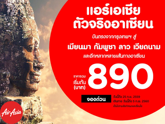และในวันนี้ govivigo มีโปรโมชั่นใหม่จากสายการบิน AirAsia ที่จะพาเพื่อน ๆ ไปพักผ่อน ท่องเที่ยวช่วงปลายปี แบบไม่ใกล้ไมไกล ไม่ต้องทำเรื่องขอวีซ่าให้ยุ่งยาก กับ "โปรตั๋วเครื่องบิน AirAsia ลดแร๊ง บินตรงอาเซียน เริ่ม 890 บาท" ในเส้นทางการบินจากกรุงเพทฯ สู่ เมียนมา, กัมพูชา, ลาว, เวียดนาม, มาเลเซีย, อินโดนีเซีย และอีกมากมาย ในราคาเริ่มต้นเพียง 890 บาทเท่านั้น ราคาดีงาม จนต้องบอกต่อขนาดนี้ ชักช้าไม่ได้ รับจองเลยคะ