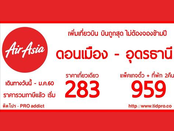 - เส้นทางบิน : บินจาก กรุงเทพฯ (ดอนเมือง) ถึง อุดรธานี ในราคาเริ่มต้น 283 บาท ลดสูงสุด 70%