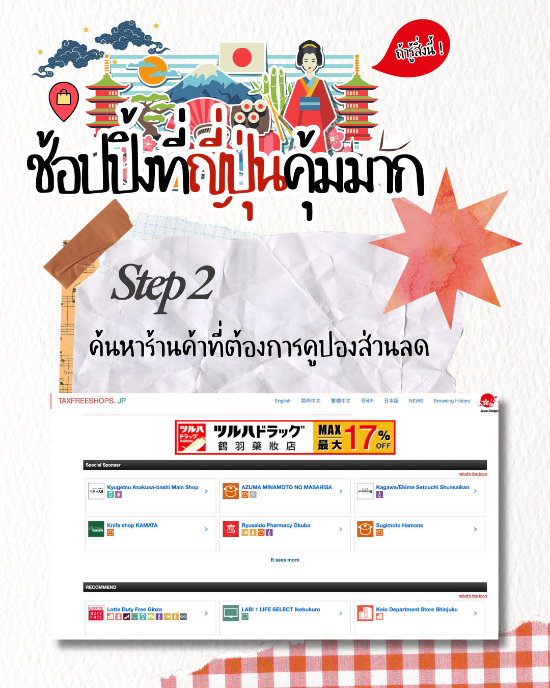 - เข้าเว็บ taxfreeshops.jp เพื่อเลือกคูปองที่ร้านที่ต้องการ