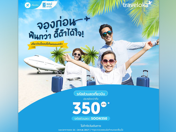 - เส้นทางบิน : บินจาก กรุงเทพฯ ถึง เชียงใหม่, เชียงราย, นครศรีธรรมราช, ภูเก็ต, สุราษฏร์ธานี, กระบี่, หาดใหญ่ และอีกหลายเส้นทาง เมื่อจองตั๋วบนแอป Traveloka รหัสส่วนลด ‘SOON350’ ลดทันที 7% สูงสุด 350 บาท (ราคาต่อเที่ยวบินสำหรับ 1 ท่าน)