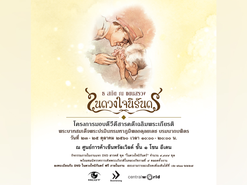 "ธ สถิต ณ แดนสรวง ในดวงใจนิรันดร์" ตั้งแต่วันที่ ๒๓ -๒๕ ตุลาคมนี้ ที่ลานอีเดน ๑ ศูนย์การค้าเซนทรัลเวิลด์