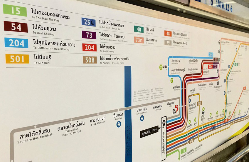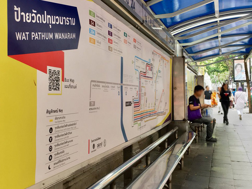 เปิดตัวป้ายรถเมล์ใหม่ สีสันสดใสไฉไลและดูง่ายกว่าเดิม เริ่มใช้แล้ว บริเวณโอสถศาลา และหน้าวัดปทุมวนาราม จัดทำขึ้นโดยทีม