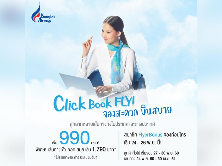 - บินจากสมุยสู่ กรุงเทพ, เชียงใหม่, พัทยา (อู่ตะเภา), กระบี่, ภูเก็ต เริ่มต้นเพียง 1,790 บาท ไป-กลับ (บาท) *ราคาไม่รวมภาษีและค่าธรรมเนียม
