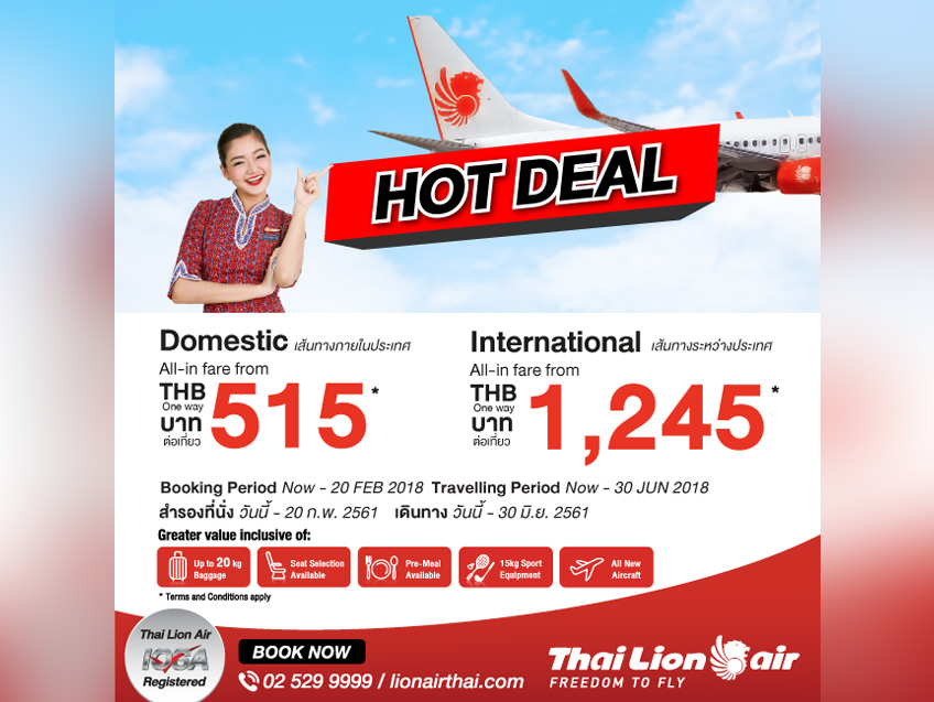 เพิ่งจะผ่านพ้นเทศกาลแห่งความรักและเทศกาลตรุษจีนมาได้ไม่นาน เพื่อน ๆ พาคนที่รักไปฉลองวันสำคัญที่ไหนกันบ้างเอ่ย? หากใครยังไม่มีโอกาสพาคนที่รักไปท่องเที่ยวในช่วงเทศกาลสำคัญ เพราะเจอปัญหาตั๋วเครื่องบินราคาสูง วันนี้ govivigo มีโปรโมชั่น Hot Deal จากไทยไลอ้อนแอร์มาฝาก เป็นราคาดี สุด Hot จากพี่สิงโต เดินทางท่องเที่ยวภายในประเทศ ราคาเริ่มต้นเพียง 515 บาท ท่องเที่ยวเส้นทางบินต่างประเทศ เริ่มต้นพียง 1,245 บาท ราคารวมน้ำหนักสัมภาระสูงสุด 20 กก. ถือเป็นอีกหนึ่งโอกาสดีๆ ที่เพื่อนๆจะได้ชดเชยความสุขให้คนที่รักอีกด้วย