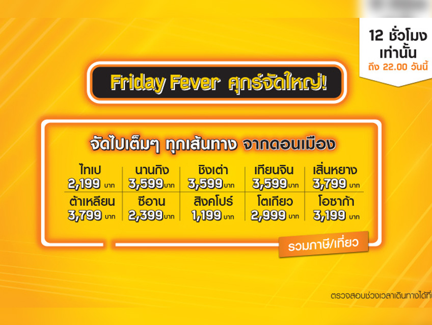 ปีใหม่ไทยผ่านพ้นไปแล้ว ใครยังไม่ได้ออกไปเที่ยว พักผ่อน เติมพลังให้ร่างกาย เพราะยังไม่เจอโปรโมชั่นตั๋วเครื่องบินราคาโดนใจ govivigo มีโปรโมชั่นจากสายการบิน NokScoot มาฝาก กับโปรโมชั่น Friday Fever ... ศุกร์นี้ที่รอคอย! บินตรงจากดอนเมือง สู่ไทเป และเมืองท่องเที่ยวยอดนิยมอื่นๆ เริ่มต้นเพียง 2,199 บาท" คุ้มในคุ้ม! ราคารวมภาษี/ต่อเที่ยว จองเลยวันนี้ 10.00-22.00 น. เท่านั้น