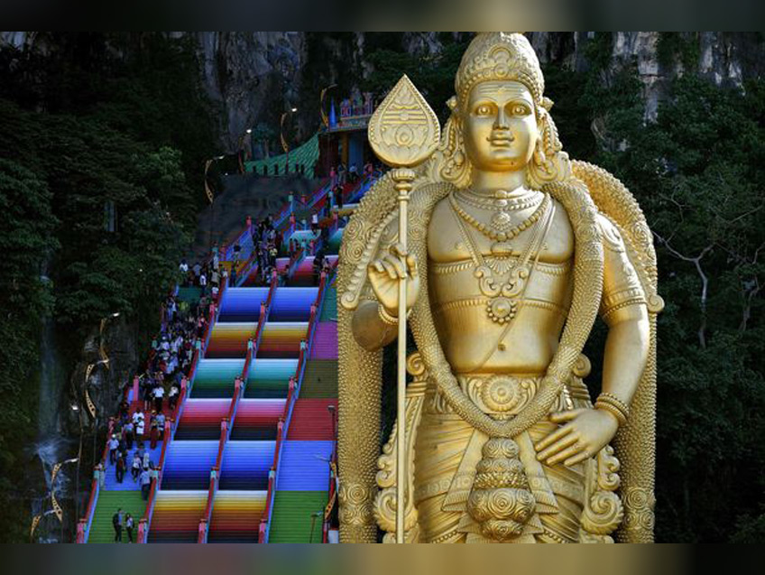 จุดเด่นคือ รูปปั้นของพระขันธ์กุมารสีทองอร่าม (Lord Murugan) สูง 42.7 เมตรที่ตระหง่านอยู่ด้านหน้าถ้ำและมีบันไดที่เป็นเนินสูงเพื่อเข้าสู่ประตูถ้ำเป็นเอกลักษณ์