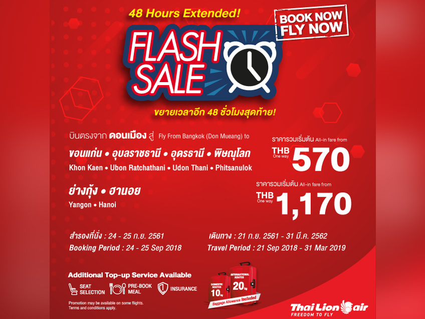 FLASH SALE โปรฯ ทุกเที่ยวบิน จองแล้วเดินทางได้เลย ราคาพิเศษทุกเส้นทางบิน อาทิ