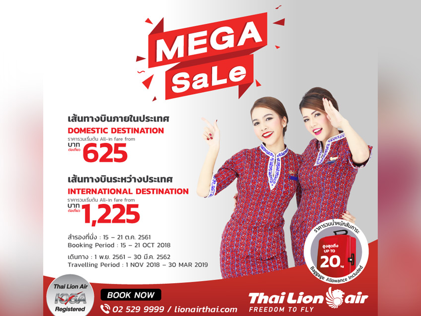 สำรองที่นั่งและดูรายละเอียดเพิ่มเติมได้ที่ : www.lionairthai.com
