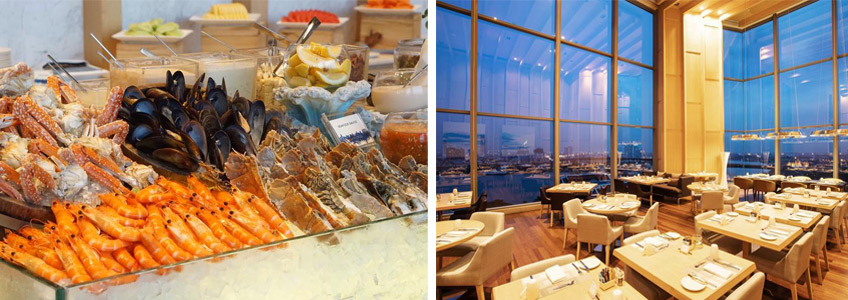 - โปรโมชั่นซีฟู้ดบุฟเฟ่ต์ มา 3 จ่าย 2 ทุกมื้อค่ำวันศุกร์ – วันเสาร์ จากราคาสุทธิปกติท่านละ 1,589 บาท เมื่อใช้สิทธิ์สุดคุ้มมา 3 จ่าย 2 หารกันแล้วจ่ายเพียงราคาสุทธิท่านละ 1,060 บาท เท่านั้น (ราคารวมภาษีและบริการ)