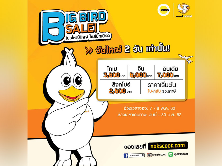 สำรองที่นั่งและสอบถามรายละเอียดเพิ่มเติมได้ที่ : nokscoot.com