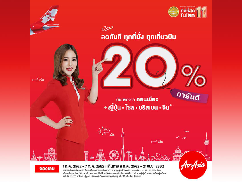 - เส้นทางบินตรงจากดอนเมือง สู่ ญี่ปุ่น โซล บริสเบน จีน ลดทันที่ 20% ทุกที่นั่ง ทุกเที่ยวบิน