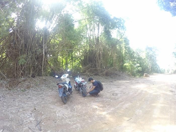 ผ่านบ้านร้างขับมาจะเจอทางดินแดงอีก แสดงว่าใกล้ถึงแล้ว ให้สังเกตฝั่งขวามือจะเจอต้นไผ่ จอดรถบริเวณนี้ได้เลย ส่วนทางขึ้นจะอยู่ตรงข้ามต้นไผ่เลยครับ ให้สังเกตดีดี จะเป็นช่องทางเดินเล็กๆครับ