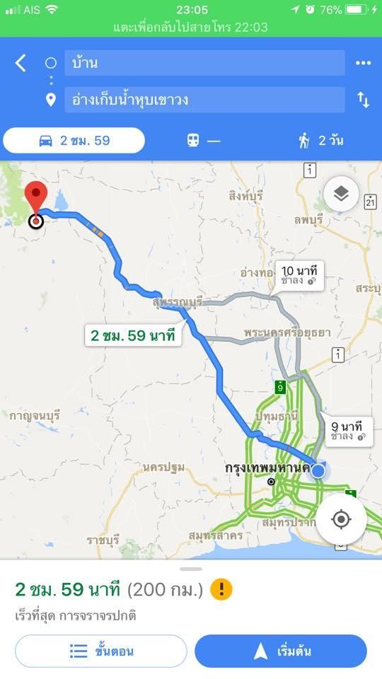ซึ่งเส้นทางที่เราใช้เดินทางนั้น เราดูเส้นทางผ่าน Google map ตั้งพิกัดเส้นทางไว้ที่อ่างเก็บน้ำหุบเขาวงกันเลย
