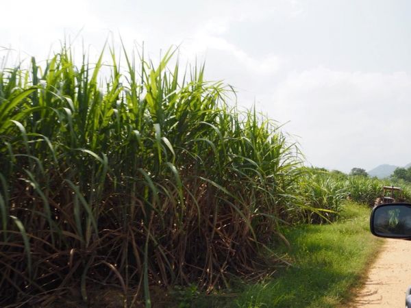 ซึ่งทั้ง2ข้างทางนั้นด้านนึงมาป่า กับอีกด้านส่วนใหญ่จะเป็นไร่ ปลูกอ้อย ปลูกมัน ปลูกกระเจี๊ยบ