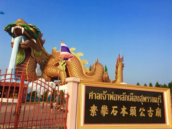 ซึ่งข้างๆ นั้นก็จะเป็น ศาลเจ้าพ่อหลักเมืองสุพรรณบุรี ซึ่งจะมีป้ายบอกทางอยู่ค่ะ