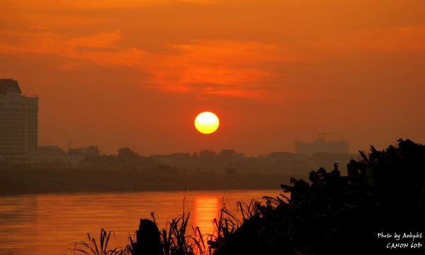ส่วนพระอาทิตย์กำลังโผล่ขึ้นมาจากฝั่งลาว