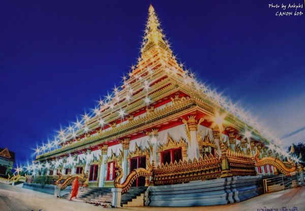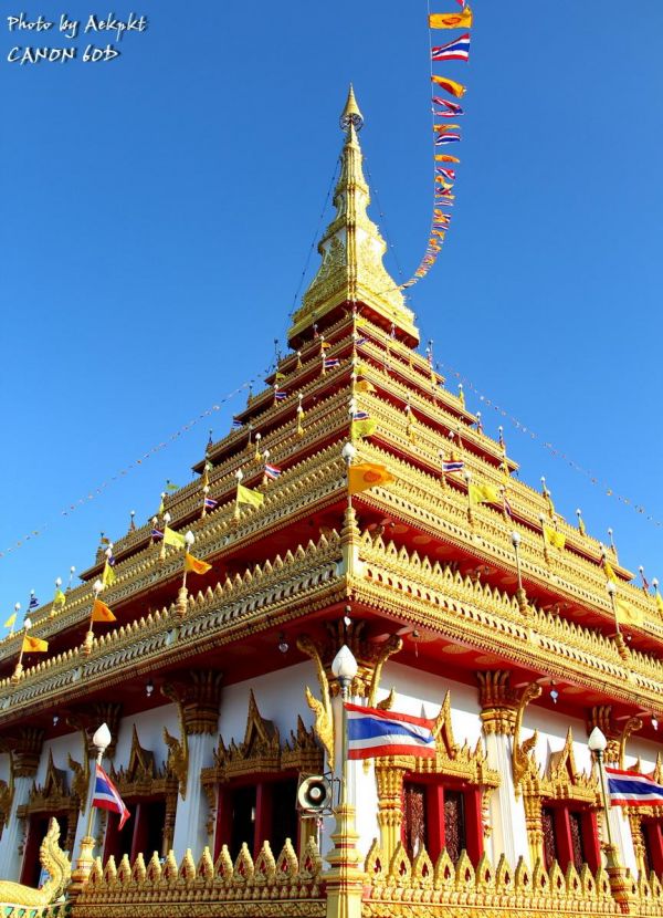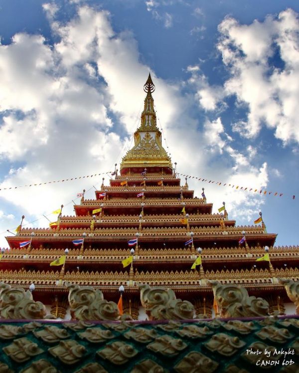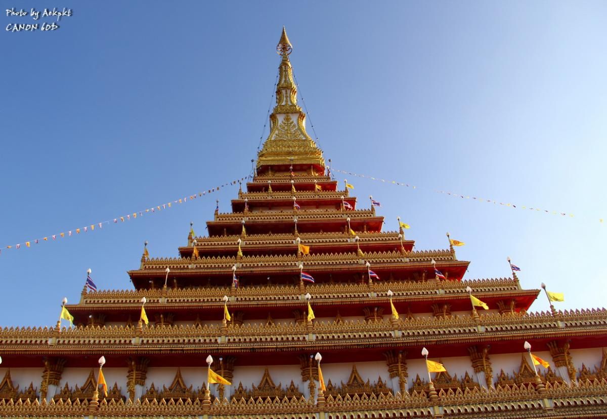 หลังจากวันแรกกลับการเดินร่วม 500 กม. มาต่อวันที่2 ออกจากศรีเชียงใหม่ ผ่านท่าบ่อ แวะตลาดท่าเสด้จหนองคาย แล้วย้อนกลับมาอุดรราชธานี เข้าขอนแก่น บ่ายแก่ มุ่งสู่จุดหมายแรก พระมหาธาตุแก่นนคร หรือพระธาตุ 9 ชั้น วัดหนองแวง ริมบึงแก่นนคร โดยสร้างขึ้นเนื่องในวโรกาสที่พระบาทสมเด็จพระเจ้าอยู่หัวทรงครองสิริราช สมบัติครบ 50 ปี และมหามังคลานุสรณ์ 200 ปี เมืองขอนแก่น ด้วยความศรัทธาอย่างแรงกล้าของสมเด็จพระญาณสังวร สมเด็จพระสังฆราช และความร่วมมือร่วมใจของชาวท้องถิ่น ความสูงขององค์พระธาตุฯ 80 เมตร มีพระจุลธาตุ 4 องค์ ตั้งอยู่ 4 มุมและมีกำแพงแก้วพญานาค 7 เศียรล้อมรอบ เป็นศิลปะสมัยทวาราวดี ผสมผสานศิลปะอินโดจีน ในขณะเดินขึ้นไปในแต่ละชั้น พร้อมยังสามารถเดินชมศิลปะและความงดงามของบานประตู ภาพวาด และหน้าต่างแกะสลัก บอกเล่าเรื่องราวเป็นภาพชาดก ภาพพุทธประวัติ ในชั้นบนสุดของพระธาตุเป็นสถานที่บรรจุพระบรมสารีริกธาตุกลางบุษบก อีกทั้งยังเป็นจุดชมวิวทัศนียภาพความสวยงามของเมืองขอนแก่นได้รอบทั้ง 4 ทิศ โดยเฉพาะทางด้านทิศตะวันออกสามารถมองเห็นทิวทัศน์ของบึงแก่นนคร