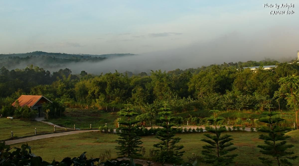 ยามเช้า มีหมอกให้เห็นหลังจากฝนตกเมื่อวานเย็น อากาศเย็นสบาย