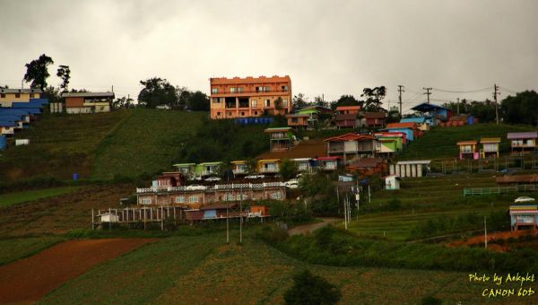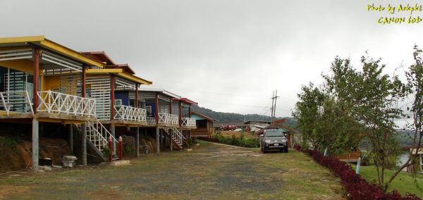 กลุ่มที่พักที่เห็นกลางภาพ ใต้ตึกสีส้ม คือรีสอร์ทที่พักสำหรับคืนนี้