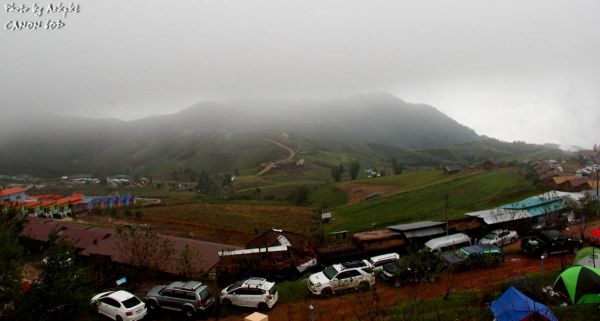 ไม่ได้เดินขึ้นไปตรงจุดสูงสุดครับ ฝนตก พรุ่งนี้เช้าก่อน ลงไปตามทางที่ไปวัดภูทับเบิก ท่ามกลางฝนตกเป็นช่วงๆ