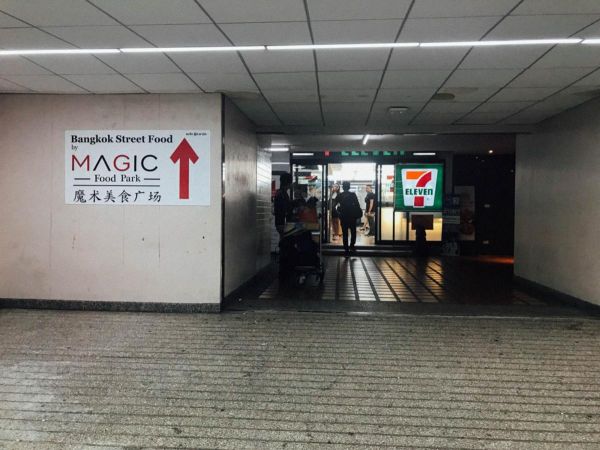 จากนั้นเลี้ยวไปฝั่งซ้ายครับ ตามลูกศรสีแดงไป เป็นอาคารจอดรถ รวมถึงเป็นที่ตั้งของ Magic Food Park ศูนย์อาหารเล็กๆ แต่ไม่ลับ ราคาถูกมาก เริ่มต้นที่ 30 บาทเท่านั้นครับ