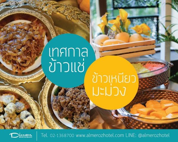 โรงแรม อัล มีรอซ บนถนนรามคำแหงซอย 5 จัด "ซัมเมอร์เฟรช บุฟเฟ่ต์" อร่อยกับอาหาร บุฟเฟ่ต์นานาชาติ พร้อมเสริมเมนูคลายร้อนอย่าง "ข้าวแช่" และขนมหวานไทยยอดนิยมข้าวเหนียวมะม่วง เพียง 765 บาทสุทธิ/คน ตั้งแต่บัดนี้-15 พฤษภาคมศกนี้ ณ ห้องอาหารดีวาน โรงแรม อัล มีรอซ โทร 02-136-8700 หรือ https://www.facebook.com/almeroz.bangkok/