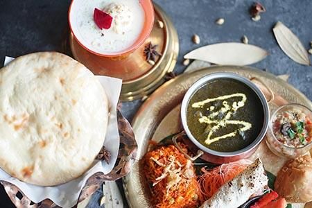 🥗 เซ็ทมังสวิรัติ การันตีความอิ่มคุ้มกับ 7 เมนูอร่อย ได้แก่ ข้าวเกรียบอินเดียกับซอสมะเขือเทศ สลัดมะเขือม่วงหรือมูฮัมมารา แป้งพัฟไส้ผักโขมหรือซาโมซาผัก แกงชีสผักโขมหรือแกงมันฝรั่งกับดอกกะหล่ำ ข้าวหมกผัก แป้งนาน พุดดิ้งนมสดและไอศกรีม 😍✨✨