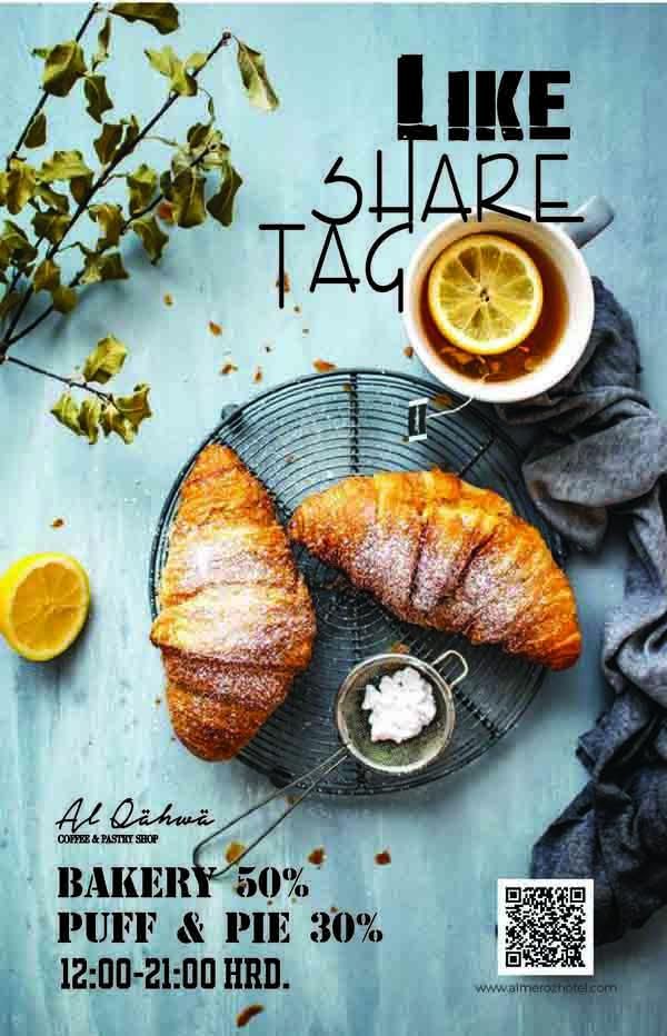โรงแรมอัล มีรอซ (Al Meroz) ฮาลาลโฮเต็ลบนถนนรามคำแหง 5 จัดโปรโมชั่น “Like-Share-Tag” เพียงกด like กด share หรือกด tag ที่เฟซบุ๊ก Al Meroz รับไปเลยส่วนลด 50% สำหรับเบเกอรี่ และ 30% สำหรับพัฟ แอนด์ พาย อาทิ บราวนี่ชีสเค้ก บลูเบอรี่ชีสเค้ก ช็อกโกแลตลาวามูสเค้ก โอเปร่าเค้ก มาร์เบิลชีสเค้ก ครัวซองเดทบัตเตอร์ ซินนาม่อน พัฟทูน่า ฯลฯ เฉพาะวันพุธและเสาร์ – อาทิตย์ เวลา 12.00 – 21.00 น.